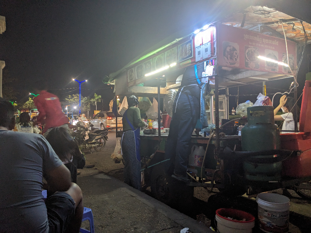 Gisteren in Kampong Cham aangekomen. Het is de derde grootste stad van Cambodja. De stad ligt aan de Mekong en vooral in de avond is het gezellig om op de boulevard langs de rivier te lopen en (lekker!) te eten bij een van de talloze eetstalletjes die er in de avond neergezet worden.