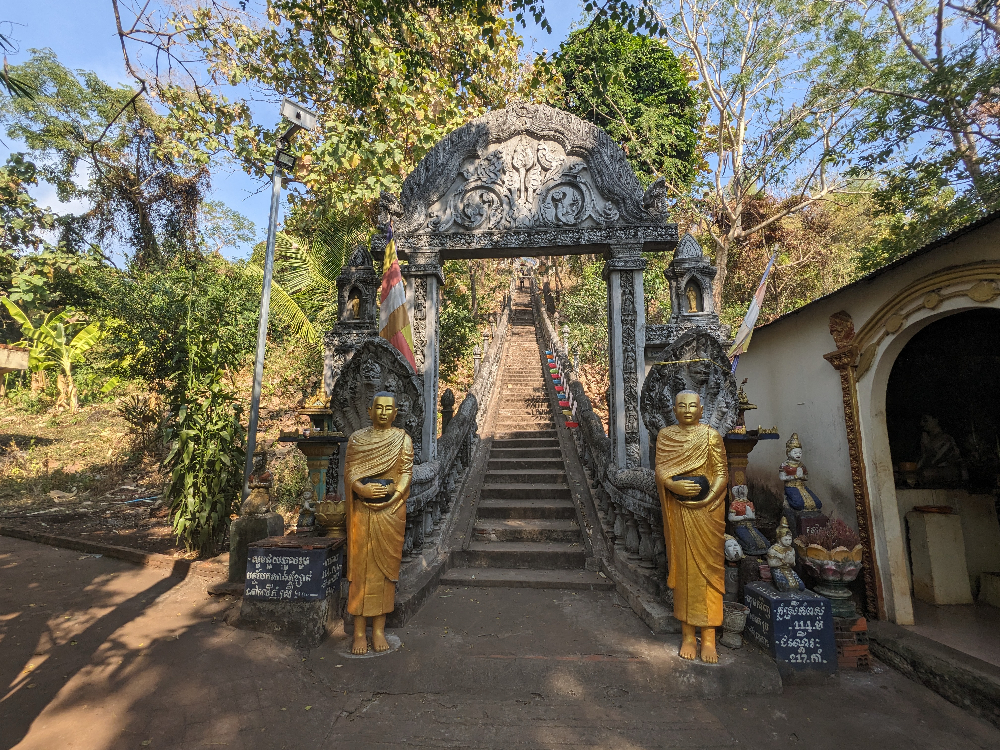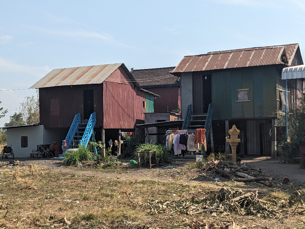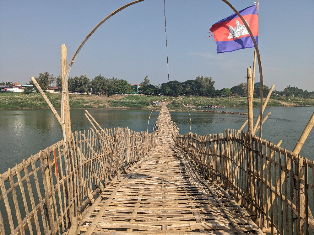 Als eerste ben ik naar de bamboebrug gereden. Deze ligt over de Mekong en verbind het vasteland met het eiland Koh Paen. Tijdens het regenseizoen wordt de brug weggespoeld door de harde stroming. Koh Paen is dan alleen met de boot bereikbaar. Elk jaar wordt de brug aan het einde van het regenseizoen weer opgebouwd. Het is een leuke ervaring om over de brug naar de overkant te lopen.