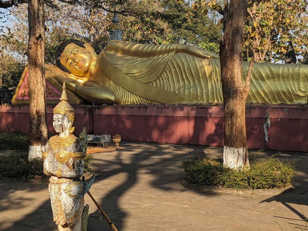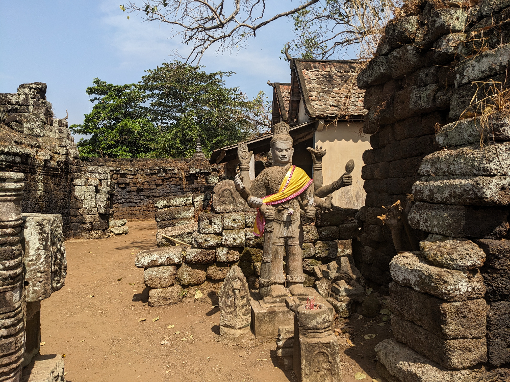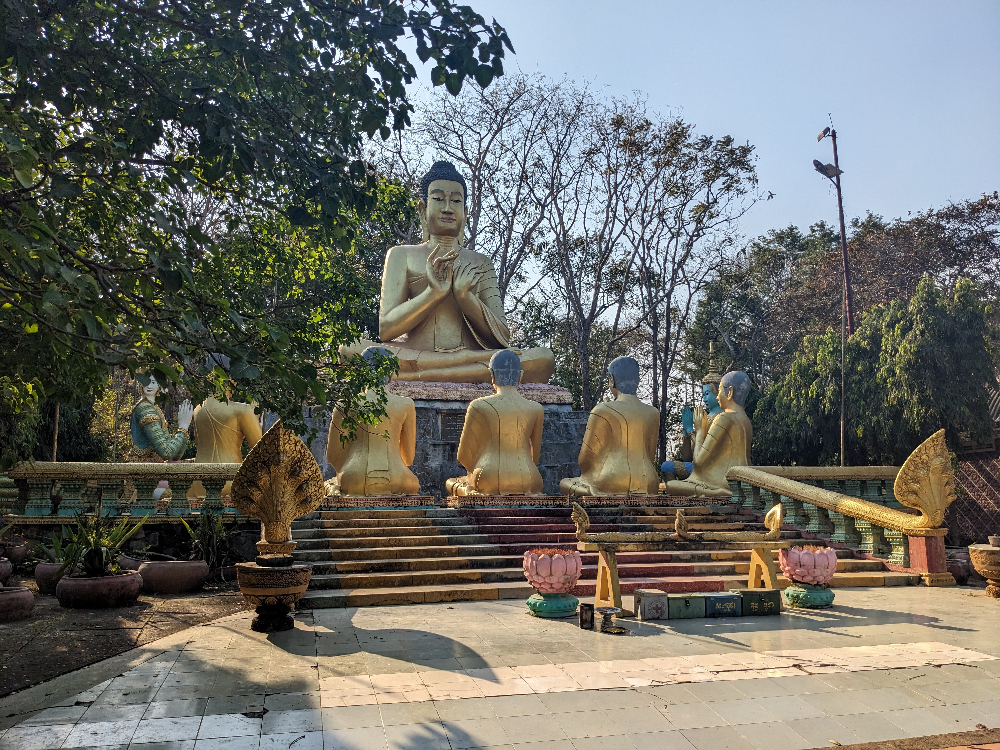 Gisteren heb ik de stad lopend verkend en in de avond kreeg ik een fiets mee van de vrouw van het guesthouse. Voor vandaag een scooter gehuurd zodat ik naar de bezienswaardigheden kon gaan die wat verder weg liggen. De benzine haal je gewoon aan een kraampje waar ze die per liter in een oude colafles bewaren. Met een trechter wordt je scooter netjes volgetankt. Het is wel even wennen aan het verkeer wat kriskras door elkaar lijkt te rijden! De voorrangsregels zijn hier wel wat anders 😀