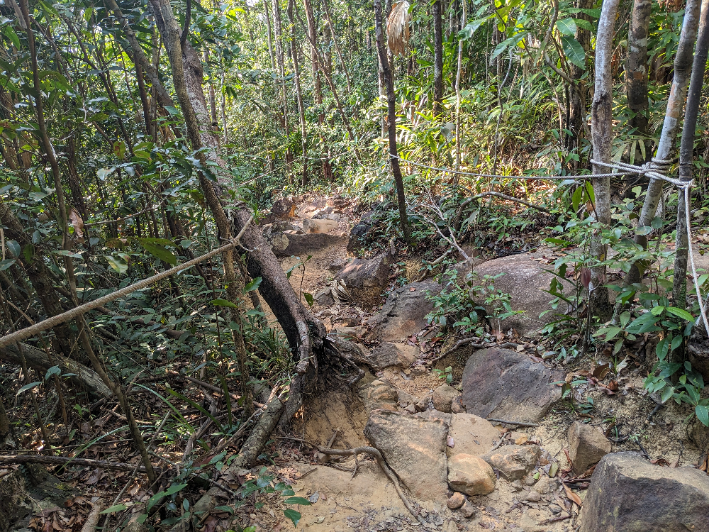 Op ongeveer 30-45 minuten lopen door de jungle van mijn bungalow vandaan (afhankelijk van wat voor schoenen je aan hebt, op mijn slippers deed ik er minstens 45 minuten over :-)) kwam je aan op Sunset beach. Zelf vond ik dit het mooiste strand. De wandeling die soms bijna loodrecht naar beneden (en terug dus omhoog) ging over rotsen en losse stenen, was het meer dan waard!