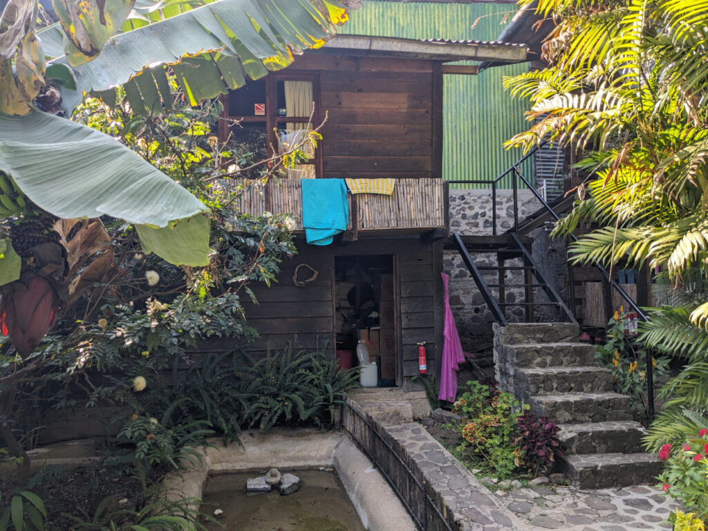 in de prachtige tuin van het hostel ligt de dorm die ik met twee andere mensen deel.