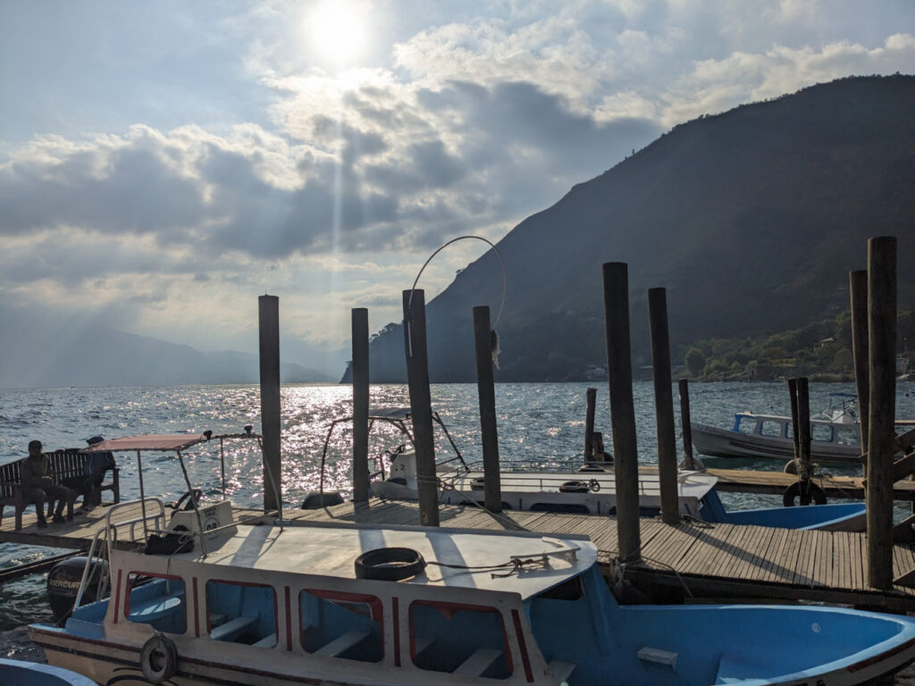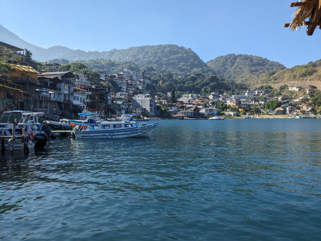 Vanuit Panajachel, het grootste dorp en de plek waar je aankomt als je met de bus naar Lago Atitlán reist, op de boot naar Santa Cruz gestapt waar het hostel ligt waar ik de komende 4 dagen zal verblijven.