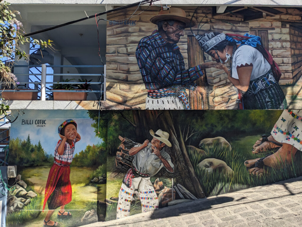 De volgende ochtend ben ik met de boot 2 andere dorpen wezen bezoeken. Als eerste deed ik San Pedro aan. Dit is een levendig dorp met veel restaurantjes en cafeetjes waar veel backpackers heen gaan. Toen ik wat meer het dorp inliep, van het water af, kwam ik vooral locals tegen. De vrouwen zien er daar kleurrijk uit in traditionele kleding! Wat me ook opviel in San Pedro waren de vele prachtige muurschilderingen, wat het dorp een vrolijk aanzicht gaf!